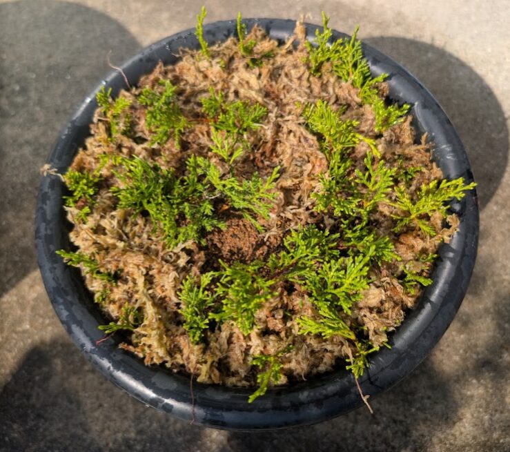 今日(2026年4月8日)も数本の挿し木を行いました。水枯れや挿し木が動くことがダメなので表面を水苔で多いました。これが吉と出るか凶と出るかを見届けます!